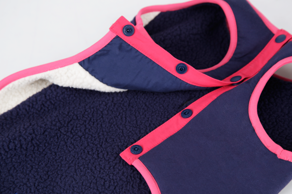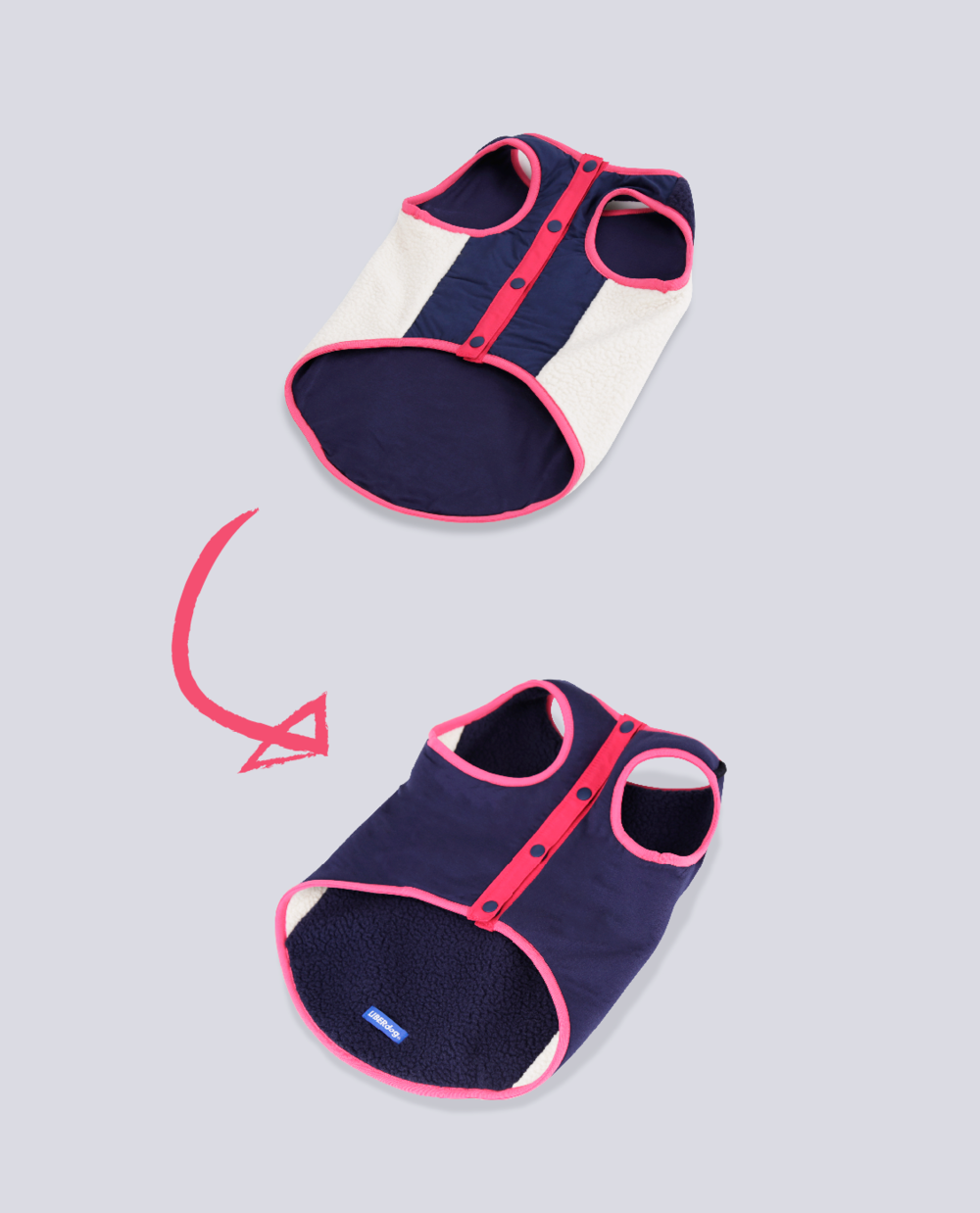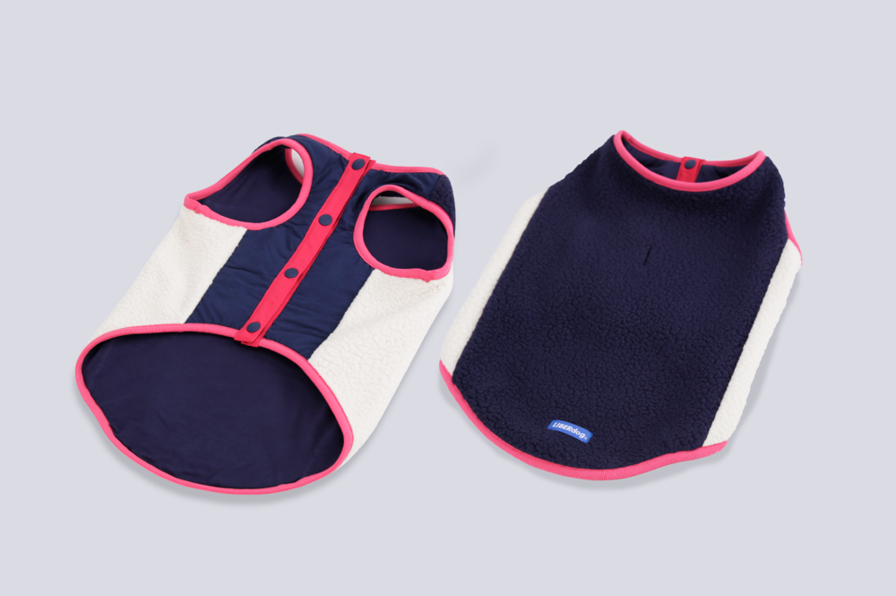 리베르독만의 시그니처 디자인으로 대조되는 컬러의 디테일이 독보이는 제품입니다. 또한 양면 모두 풀 스냅 구조로 리버서블하게 활용이 가능합니다.