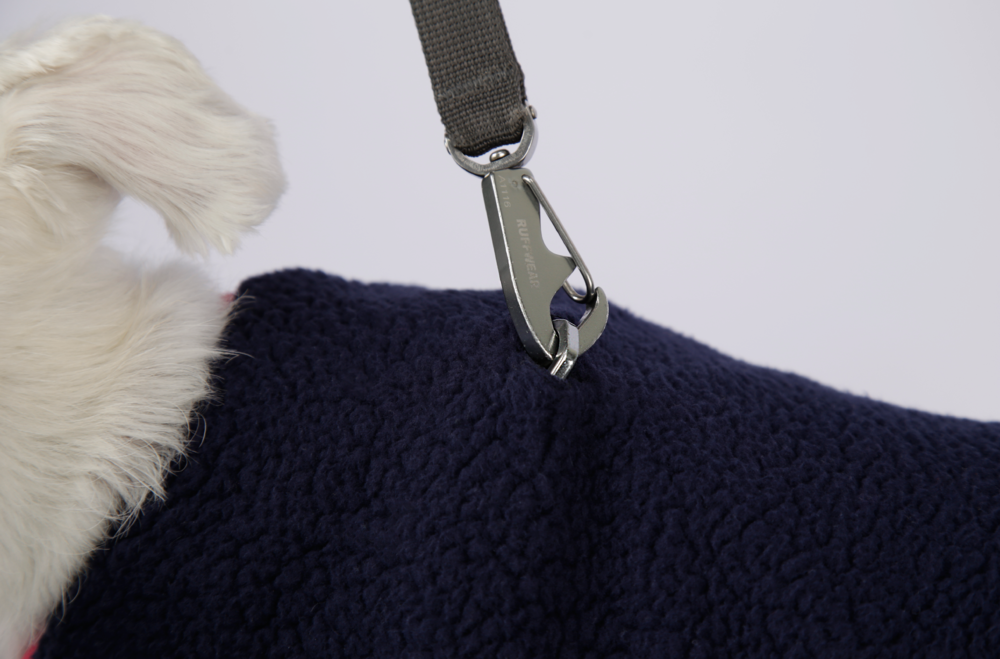 리드줄 구멍이 있어 하네스를 옷 안쪽에 착용 가능합니다. (위 사진은 러프웨어 하네스를 착용한 모습입니다.)