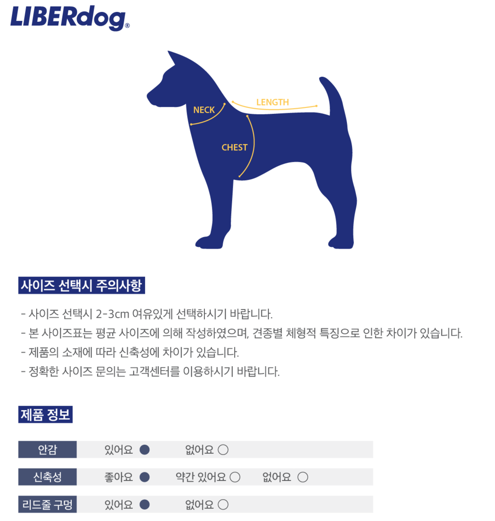 사이즈 정보: 반사이즈 크게 제작되어 하네스 착용과 이너웨어 착용이 가능합니다.