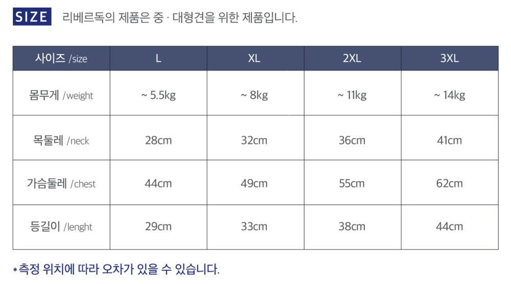 착용컷 / 네이비 몸무게 11kg / 사이즈 2XL